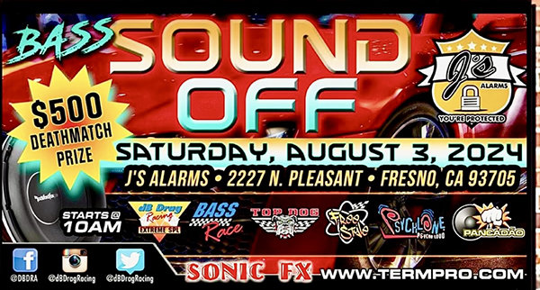 FRESNO, CA (08.12.24) – The J’s Alarms 3X dB Drag event took place on Saturday, August 3rd wrapping the 4 event season in Fresno, CA at the retail store location. This was the last event of four events in 2024 for J’s and ended with a $500 Deathmatch prize. The event started at 8 AM on Saturday August 4th with a full lineup of and formats.