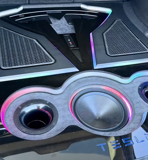 Vince Miranda’s Tesla won the Best Audio Trophy at the Expo. Miranda and the Audio Xperts crew have been on the cutting edge of Tesla product upgrades from the beginning. With live demos Miranda provided consumers a true Alpine Tesla Experience. The rear compartment housed a custom system installation with subwoofers and amplifiers. Everything spotlighted with LED lighting.