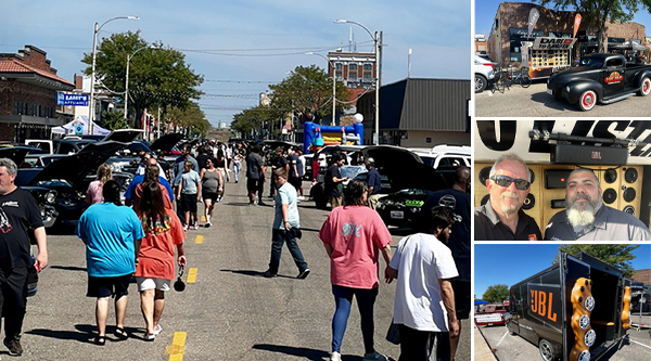 Larry Alverez related, “Once again we had a terrific event. Show cars, classics, bikes and some UTVs lined the street in front of local shops downtown. Our store is on a corner and we were very busy throughout the day. Our JBL branded ‘Milk Truck’, loaded with JBL, was out front and drew a crowd, like a magnet, each time we cranked the volume. Chris Pace with Arrowhead Sales pulled in his JBL trailer for demos and parked right out front of our store this year.”