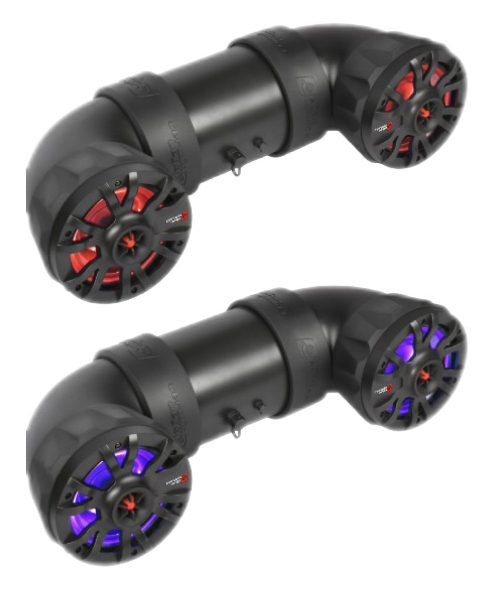 The UTV65 and UTV65LED models are equipped with powerful built-in 600-Watt Max amplifiers and high-output 6.5-inch 2-way speakers, ensuring a premium audio experience for UTVs, ATVs, boats, and other off-road vehicles. The UTV65LED also features custom RGB LED lighting, allowing users to personalize their sound system with dynamic lighting effects controlled via a wireless remote.
