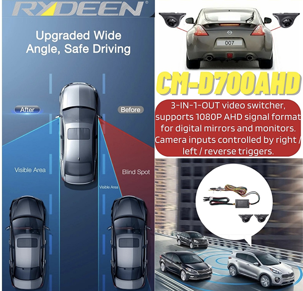 The DUAL SIDE CAMERAS AND DIGITAL VIDEO SWITCHER is a unique camera system designed to improve vehicle safety and functionality by adding side cameras to a digital mirror’s left and right sides.