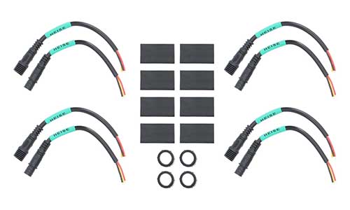 Heise LED lighting by connecting one of these adapters at the end of an LED strip or in-line at any point in the harness by simply cutting the strip or extension cable connector, soldering the adapter’s male and female connectors, and inserting wiring for a Y adapter, rock light, or other Heise lighting product. Four new options are available: