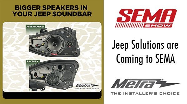 HOLLY HILL, FL (10.30.24) – Metra Electronics is showcasing aftermarket accessories designed to fit select late-model Jeep Gladiator JT and Wrangler JL vehicles at this year’s SEMA Show. Show attendees can view them from November 5th to 8th in Metra’s main SEMA Show booth, #10439, in the North Hall of the Las Vegas Convention Center and at its off-roading and powersports booth, #24743, in the Central Hall. The manufacturer will display new items, including a soundbar adapter, lower dash speaker grille cut-ins, lower dash speaker pods, and popular products from its existing lineup of audio accessories. These upgrades cover applications for 2018-up* Jeep vehicles, including 2024 models, making Metra an industry leader for these highly sought-after products.