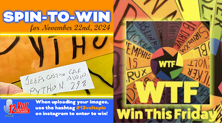 Past winners of the 12volt Spin-To-Win include…Stereo & Video Center-Tyler TX, The Outlaw Garage-Franklin TN, Exotic Sounds-West Palm Beach FL, Endless Possibilities-Aurora IL., Go Auto Sound in Union City NJ, Al&Ed’s South Bay CA, No Limitz Car Audio in Upland CA, Neil’s Specialty-Eureka CA, Sturgess Customs-Lexington SC, Audio By Art-San Antonio TX, SMS Car Audio in Marreo LA and Sweet Wheelz in Mississauga Ontario Canada, Cartronics in Biscayne FL, The CarAudio Shop in St Louis MO, Exotic Sounds in West Palm Beach FL, High North Customs in Grand Prairie Alberta Canada and AMS Audio in Bakersfield CA, Team QRT in Abbeyville LA and California Sound in Fontana CA and Jackie Cooper Electronics, Oklahoma City OK, MARS Audio-Orlando FL, All American Audio in Nutley NJ, Proline Car Stereo in Brooklyn NY, Custom Shop Miami, Tunes and Tint in Lakeland FL, Mobile Concepts Inc in Mokena IL, Seismic Auto Sound in Concord CA, Brooklyn Car Audio in Brooklyn NY, Audio Solutions in Florence MS, Enhanced Customs in Largo FL, Rayco Auto Clinic, Audio Design in San Jose CA, Go Bass Mode in Florida, Avenue Sound in Freeport NY, Audio Plus in Riverview FL, Stereo Zone in Whittier CA, In-Phase Car Audio in Omaha NE, AutoLife Group, N&H Electronics, SK Customs, Land & Sea, The Audio One, NC Custom Shop,Tint World Orlando, Ricky Smith’s Audio, VIP Custom Woks, Mobile Audio Concepts, Audio Lad, Sound Sensations, Dave’s Stereo, Stereo Design, Badlands Customs, Custom Audio-Erie PA, Voltz Autosports-Bridgeport CT, Infinity Sound and Security-Kissimmee, Autosport Plus-Canton OH, Stereo City Pros in Carmichael CA, Devine Concepts in Naples FL, The Sound Shop in Indian Trail NC, Extreme Performance Audio in Fresno CA, Audio Depot in Arlington TX, Audio Security in Houston TX, Earmark Car Audio and Marine in Lewisville TX, Audio Jam in Bear DE, Stereo City Ontario, Ontario CA, Audio By Art, San Antonio TX, Code Zero Customs in Tulsa OK, Ken’s Car Tunes in Mobile AL, Soundz Plus in Naperville IL, Markland Designs in Lithonia GA, Electronics Plus in Salinas CA, Xtreme Autosports in Santa Clarita CA, Superior Audio Sounds in San Angelo TX, Model Electronics in Ramsey NJ, Texas Dreamz Customs in Spring TX, Wired Electronics in Linden NJ and Intense Car Audio in OKC, OK, Underground Auto in Sarasota FL, Car Toys Tulsa in Tulsa OK, Real Audio in Erie PA, Go Autosound in Union NJ, DFM Stereo in Ukiah CA, Impact Tint and Audio in Tyler TX, Mobile Sound Systems in Arlington TX, Redline Audio and Performance In Spindale NC, Car Audio Land in San Diego CA, Audio X Custom Car Audio in Florence AL, River Oaks Car Stereo in Houston TX, American Radio Orlando in Sanford FL, Illustrious Customs in Woodbridge VA, Remote Start Pros in Lawrence MA, HiPro Audio in Victoria TX, AudioPlanetNY in Huntington Station NY, Endless Possibilities in Aurora IL, Audio Finesse in Santa Monica, Drive Customs in San Luis Obispo CA, Custom Works, Noblesville IN, AtoZ Detail in West Haven CT, Cars 843 in Charleston SC, CarTunes Atlanta in Atlanta GA, Mobile Concepts in Garwood NJ, Duke’s Car Stereo in Flint MI, Infinity Auto Sound, King Car Audio in Norwalk CT, PopTronics in Baltimore MD, Sanford Sound in Sanford ME, Angelvip2474 in Draper UT, Dynamic Car Audio in Baltimore MD, Hi-Pro Audio in Victoria TX, Car Stereo Max in Houston, Pro Audio Center in Richland MS, Rhodes Off-Roads in Farmington MO, Model Electronics in Ramsey NJ, Class A Sounds in Athens OH. Just Audio Video in North Providence RI, CT_Custom in Philadelphia, Audio Solutions in Florence MS and The Audio Shop RC in Rapid City SD, DG Motorsportz in High Point NC, ST Mobile in Texarkana TX, AR Custom OC in Orange CA, Temecula Mobile Sound in Temecula CA, Unique Auto Sound in Lindenhurst NY, D’s Garage in Corona CA and DS2 Mobile Solutionz in Tomball TX, C G Car Audio in Kissimmee FL, California Audio in West Valley City UT and The Action Audio Store in Wethersfield CT, Eclipse Car Audio in Vancouver WA, Electronics Depot Car Audio in Altamonte Springs FL. Car Audio Garage in Pearland TX, Pinnacle Autosound in Lake City FL, J H Audio in Bowling Green VA, The Car Audio Shop StL in High Ridge MO, Anthonys Car Stereo in North Highlands CA, Flynn Audio in Middleton WI, Living Loud Car Audio in Pelham AL, Trail Star Audio in Minnesota, On The Spot Audio in Pennsauken NJ, Animated Car Audio in Essex MD, West Coast Car Audio in Citrus Heights CA, Modified Auto Sound in East Alton IL, Star Car Audio in Hermiston OR, VapeNAudio in Clovis CA, SoundWorks in Millersville MD Eclipse Car Audio in Vancouver WA, J A Custom Audio in Houston TX Jose Electronics in North Hills CA, Sound Proof Car Stereo in Douglasville GA, Auto Additions in Springfield IL, Elite Car Audio in Hollywood CA, Masters Car Stereo in Greenville SC, Audio Plus in Eden NC, Seismic AutoSound in Novato CA, Car Audio Addicts in Pittsburgh PA and AudioKing Tinting in Yakima WA, Arias Tint and Alarms in Duncanville TX, Odeh Car Audio in Gadsden AL, 12volt Specialist in Newark DE, Cutting Edge Audio in San Diego CA, Southern Auto Fab in Lafayette LA, California Sound in Fontana CA, Big Boyz Toyz in Florence SC, 740 Audio in Athens OH and 12volt Outfitters in Hollywood FL., High Quality Auto Sound, Lawrence MA, Custom Car Stereo SC in Spartanburg SC, Zier Box in Dallas TX, Maximum in Manville NJ, Audio Car Stereo in Miami FL, Mach 1 Audio in Washington MO, Doren Car Stereo in Queens Village NY, Side-x-Side Audio in South Charleston WV, Sound Concept in Nanuet NY, Pda Road Gear in Littleton CO and A-Plus Audio and Tinting Newington CT, Audio Electronics in Indianapolis IN, Tint and Sound in Frederick MD, Tint World Wilmington DE, VIP Autoworks in Mentor OH, All Out Audio in Killeen TX, Yong’s Audio in Indianapolis IN, Custom Audio Concepts in Lima OH, Clear Vibrations in Quakertown PA, The Outlaw Garage in Columbia TN, Xpert Car Audio in Layton UT, No Doubt Window Tint in Ardmore OK, San Diego Car Stereo in San Diego CA, 