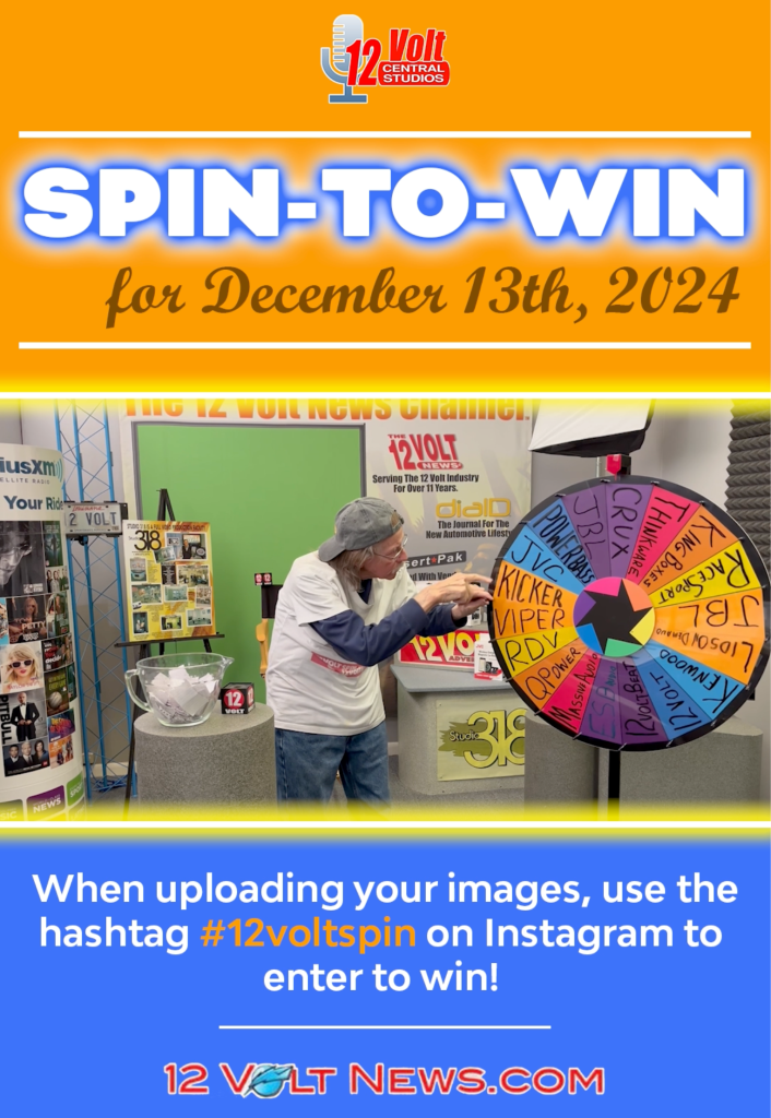 12VOLT CENTRAL STUDIOS (12.14.24) The 12volt Spin-to-Win Wheel was created to bring an element of fun to the 12volt industry. The weekly 12volt Spin-To-Win Wheel is now spinning in Year 6.