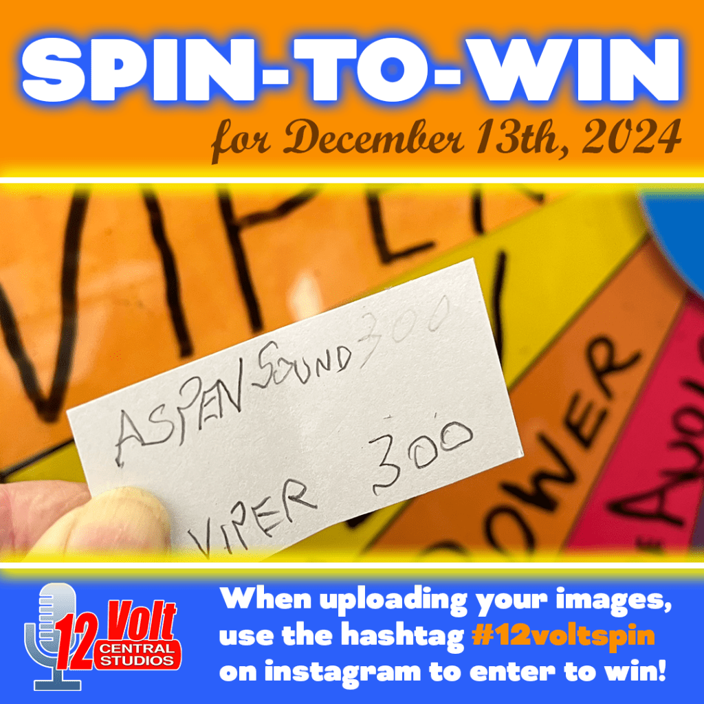 The 12volt Spin-To-Win Wheel rolled for the 300th time on Friday morning on December 13th. The Wheel landed on the VIPER space and the Aspen Sound slip was drawn from the jar. An Instagram post of the winning spin slip was posted. A video of the Wheel spin was also posted.