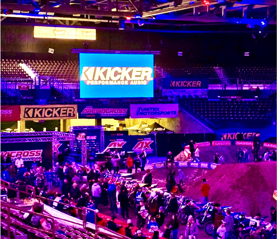 Zach related. “We connected with so many people and handed out over 200 cards in addition to giving away many lanyards and more. Hundreds and hundreds of enthusiasts passed by the KICKER booth and we had serious time with a coupe dozen folks. Sound Hound Stereo is celebrating our 29th Anniversary this year and several people we saw at the booth were friends and happy customers. KICKER is a go to brand in our store. In fact we have one wall in the showroom which is decorated for the Holidays that highlights many KICKER products and a marine display. Auto, truck, marine and motorsports products are all hot categories in Idaho and KICKER has products in all those categories… Bullfrog portables too. We thank KICKER for inviting us participate in this AMA ArenaCross and look forward to the next opportunity.”