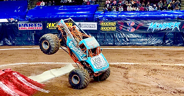 As soon as the Pit Party activity ended there was action on the track. Monster trucks we’re racing up the ramps and flying over obstacle courses, crushing cars, racing around obstacles and doing tricks. All in the audience and on the track were Livin’Loud in the Brookshire’s Arena.