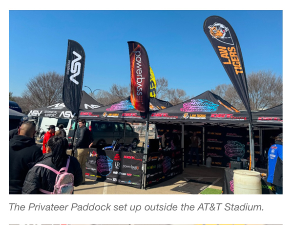 “PowerBass is a sponsor of the Privateer Paddock this season for the Supercross and Arenacross so we reached out to our reps and distributors in the cities and areas to encourage them to get loyal local dealers involved. The Dallas event was the first national event and all worked so well. All enjoyed the racing action at night also. We have things set up for weekend, Saturday March 8th, at Lucas Oil Stadium in Indy too. Stay tuned” Harbour related.