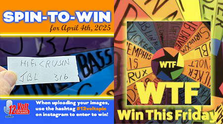 Past winners of the 12volt Spin-To-Win include…Stereo & Video Center-Tyler TX, The Outlaw Garage-Franklin TN, Exotic Sounds-West Palm Beach FL, Endless Possibilities-Aurora IL., Go Auto Sound in Union City NJ, Al&Ed’s South Bay CA, No Limitz Car Audio in Upland CA, Neil’s Specialty-Eureka CA, Sturgess Customs-Lexington SC, Audio By Art-San Antonio TX, SMS Car Audio in Marreo LA and Sweet Wheelz in Mississauga Ontario Canada, Cartronics in Biscayne FL, The CarAudio Shop in St Louis MO, Exotic Sounds in West Palm Beach FL, High North Customs in Grand Prairie Alberta Canada and AMS Audio in Bakersfield CA, Team QRT in Abbeyville LA and California Sound in Fontana CA and Jackie Cooper Electronics, Oklahoma City OK, MARS Audio-Orlando FL, All American Audio in Nutley NJ, Proline Car Stereo in Brooklyn NY, Custom Shop Miami, Tunes and Tint in Lakeland FL, Mobile Concepts Inc in Mokena IL, Seismic Auto Sound in Concord CA, Brooklyn Car Audio in Brooklyn NY, Audio Solutions in Florence MS, Enhanced Customs in Largo FL, Rayco Auto Clinic, Audio Design in San Jose CA, Go Bass Mode in Florida, Avenue Sound in Freeport NY, Audio Plus in Riverview FL, Stereo Zone in Whittier CA, In-Phase Car Audio in Omaha NE, AutoLife Group, N&H Electronics, SK Customs, Land & Sea, The Audio One, NC Custom Shop,Tint World Orlando, Ricky Smith’s Audio, VIP Custom Woks, Mobile Audio Concepts, Audio Lad, Sound Sensations, Dave’s Stereo, Stereo Design, Badlands Customs, Custom Audio-Erie PA, Voltz Autosports-Bridgeport CT, Infinity Sound and Security-Kissimmee, Autosport Plus-Canton OH, Stereo City Pros in Carmichael CA, Devine Concepts in Naples FL, The Sound Shop in Indian Trail NC, Extreme Performance Audio in Fresno CA, Audio Depot in Arlington TX, Audio Security in Houston TX, Earmark Car Audio and Marine in Lewisville TX, Audio Jam in Bear DE, Stereo City Ontario, Ontario CA, Audio By Art, San Antonio TX, Code Zero Customs in Tulsa OK, Ken’s Car Tunes in Mobile AL, Soundz Plus in Naperville IL, Markland Designs in Lithonia GA, Electronics Plus in Salinas CA, Xtreme Autosports in Santa Clarita CA, Superior Audio Sounds in San Angelo TX, Model Electronics in Ramsey NJ, Texas Dreamz Customs in Spring TX, Wired Electronics in Linden NJ and Intense Car Audio in OKC, OK, Underground Auto in Sarasota FL, Car Toys Tulsa in Tulsa OK, Real Audio in Erie PA, Go Autosound in Union NJ, DFM Stereo in Ukiah CA, Impact Tint and Audio in Tyler TX, Mobile Sound Systems in Arlington TX, Redline Audio and Performance In Spindale NC, Car Audio Land in San Diego CA, Audio X Custom Car Audio in Florence AL, River Oaks Car Stereo in Houston TX, American Radio Orlando in Sanford FL, Illustrious Customs in Woodbridge VA, Remote Start Pros in Lawrence MA, HiPro Audio in Victoria TX, AudioPlanetNY in Huntington Station NY, Endless Possibilities in Aurora IL, Audio Finesse in Santa Monica, Drive Customs in San Luis Obispo CA, Custom Works, Noblesville IN, AtoZ Detail in West Haven CT, Cars 843 in Charleston SC, CarTunes Atlanta in Atlanta GA, Mobile Concepts in Garwood NJ, Duke’s Car Stereo in Flint MI, Infinity Auto Sound, King Car Audio in Norwalk CT, PopTronics in Baltimore MD, Sanford Sound in Sanford ME, Angelvip2474 in Draper UT, Dynamic Car Audio in Baltimore MD, Hi-Pro Audio in Victoria TX, Car Stereo Max in Houston, Pro Audio Center in Richland MS, Rhodes Off-Roads in Farmington MO, Model Electronics in Ramsey NJ, Class A Sounds in Athens OH. Just Audio Video in North Providence RI, CT_Custom in Philadelphia, Audio Solutions in Florence MS and The Audio Shop RC in Rapid City SD, DG Motorsportz in High Point NC, ST Mobile in Texarkana TX, AR Custom OC in Orange CA, Temecula Mobile Sound in Temecula CA, Unique Auto Sound in Lindenhurst NY, D’s Garage in Corona CA and DS2 Mobile Solutionz in Tomball TX, C G Car Audio in Kissimmee FL, California Audio in West Valley City UT and The Action Audio Store in Wethersfield CT, Eclipse Car Audio in Vancouver WA, Electronics Depot Car Audio in Altamonte Springs FL. Car Audio Garage in Pearland TX, Pinnacle Autosound in Lake City FL, J H Audio in Bowling Green VA, The Car Audio Shop StL in High Ridge MO, Anthonys Car Stereo in North Highlands CA, Flynn Audio in Middleton WI, Living Loud Car Audio in Pelham AL, Trail Star Audio in Minnesota, On The Spot Audio in Pennsauken NJ, Animated Car Audio in Essex MD, West Coast Car Audio in Citrus Heights CA, Modified Auto Sound in East Alton IL, Star Car Audio in Hermiston OR, VapeNAudio in Clovis CA, SoundWorks in Millersville MD Eclipse Car Audio in Vancouver WA, J A Custom Audio in Houston TX Jose Electronics in North Hills CA, Sound Proof Car Stereo in Douglasville GA, Auto Additions in Springfield IL, Elite Car Audio in Hollywood CA, Masters Car Stereo in Greenville SC, Audio Plus in Eden NC, Seismic AutoSound in Novato CA, Car Audio Addicts in Pittsburgh PA and AudioKing Tinting in Yakima WA, Arias Tint and Alarms in Duncanville TX, Odeh Car Audio in Gadsden AL, 12volt Specialist in Newark DE, Cutting Edge Audio in San Diego CA, Southern Auto Fab in Lafayette LA, California Sound in Fontana CA, Big Boyz Toyz in Florence SC, 740 Audio in Athens OH and 12volt Outfitters in Hollywood FL., High Quality Auto Sound, Lawrence MA, Custom Car Stereo SC in Spartanburg SC, Zier Box in Dallas TX, Maximum in Manville NJ, Audio Car Stereo in Miami FL, Mach 1 Audio in Washington MO, Doren Car Stereo in Queens Village NY, Side-x-Side Audio in South Charleston WV, Sound Concept in Nanuet NY, Pda Road Gear in Littleton CO and A-Plus Audio and Tinting Newington CT, Audio Electronics in Indianapolis IN, Tint and Sound in Frederick MD, Tint World Wilmington DE, VIP Autoworks in Mentor OH, All Out Audio in Killeen TX, Yong’s Audio in Indianapolis IN, Custom Audio Concepts in Lima OH, Clear Vibrations in Quakertown PA, The Outlaw Garage in Columbia TN, Xpert Car Audio in Layton UT, No Doubt Window Tint in Ardmore OK, San Diego Car Stereo in San Diego CA, 