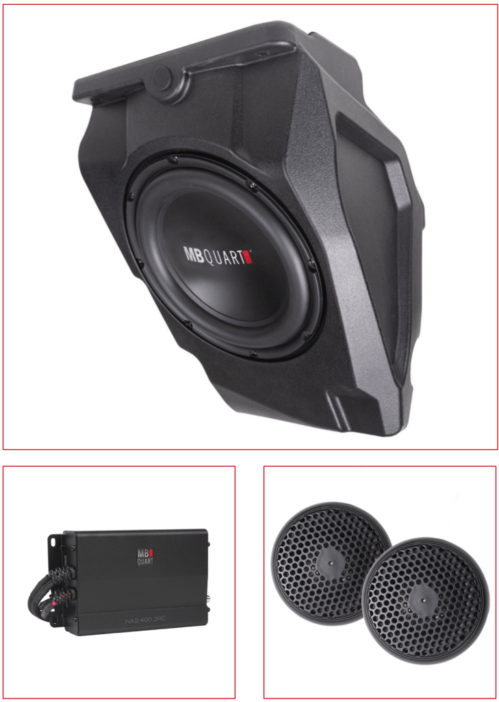Learn complete details HERE on the MB Quart MBQRP-STG3-RC-1 STAGE 3 Polaris RZR PRO XP / PRO R / TURBO R Tuned Audio System designed for RIDE COMMAND (with NO OEM audio system).