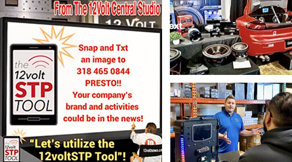 To deliver fresh industry news to members of the mobile electronics industry the 12volt Central Studios posts articles on 12voltnews.com each business day and makes multiple posts on Instagram and Facebook each day. The 12volt STP Tool was created in 2020 for members of the 12volt industry to send their news to the 12volt Central Studios. Snap and Txt an image to 318 469 2526. PRESTO, your positive news could be delivered to members of the 12volt industry.