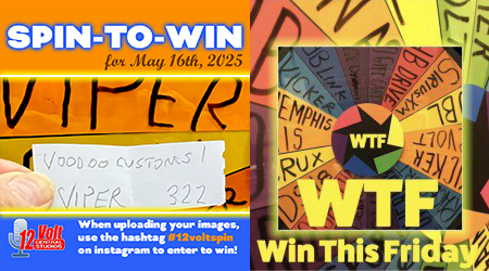 The 12volt Spin-To-Win Wheel rolled for the 322nd time on Friday morning on May 16th. The Wheel landed on the Viper space and the Voodoo Customs 1 slip was drawn from the jar. An Instagram post of the winning spin slip was posted. A video of the Wheel spin was also posted.