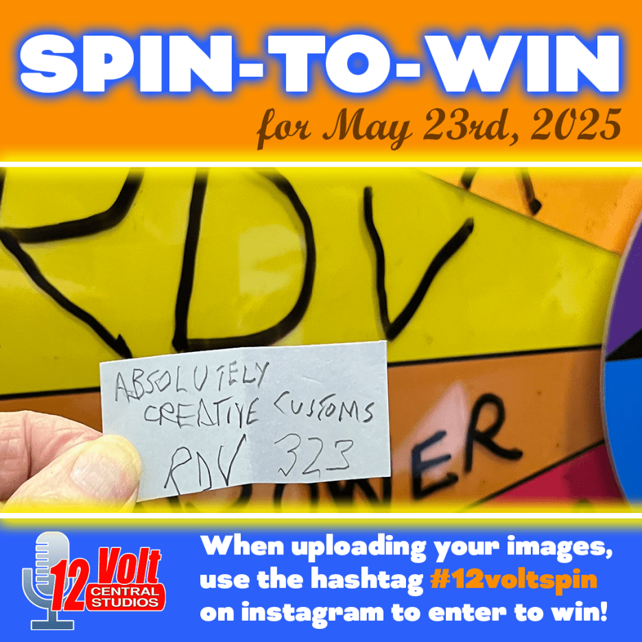 12VOLT CENTRAL STUDIOS (05.24.25) The 12volt Spin-to-Win Wheel was created to bring an element of fun to the 12volt industry. The weekly 12volt Spin-To-Win Wheel is now spinning in Year 6.