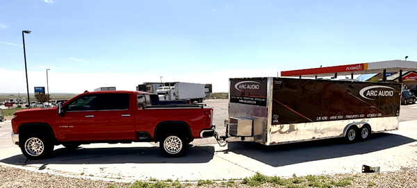 MODESTO,CA (5.27.25) – It’s well known across the 12volt industry that Brian Mitchell is a road warrior traveling across the US showcasing his custom Arc Audio builds. Mitchell‘s extraordinary recent trip included the KICKER SQ@HQ event in Stillwater, OK and from there to the PNWCEE in Seattle. When the event in Seattle wrapped, it was back ARC AudioHQ in Modesto CA. During that nine day trek May 14th thru 23rd Mitchell and Chewy in the Chevrolet pickup pulled the 30′ Arc Audio trailer. That first leg was 1611 miles behind the wheel. Chewy is Brian’s pet bull dog that is a regular at all events.