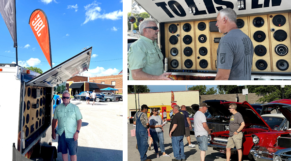 PLEASANT HILLS, MO (06.23.25) – Chris Pace rolled the Arrowhead Marketing JBL Trailer onto the Cruise Night grounds in Pleasant Hill MO on Friday night, June 20. The third Friday of every month from May to October the Pleasant Hill Downtown Association hosts a Cruise Night. All hot rods, bikes, muscle, cars, and engine powered rolling contraptions are welcomed. Cruise night features raffle 50-50 pot, live music and more. Pleasant Hill it’s a town of less than 10,000 some 30 miles from Kansas City.