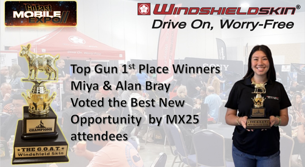 Alan and Miya didn’t just win—they dominated. With strategic selling, powerful product demos, and high dealer engagement, Windshield Skin not only took home 1st Place in the Top Gun Sales Challenge, but was also voted “Best New Opportunity” at Mobile Expo 2025 by attending dealers. A clear sign that their momentum is just getting started.