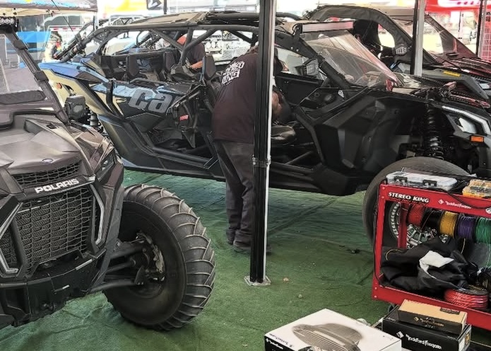 The UTV category is very strong for Stereo King day-in and day-out at their 5 locations. The Stereo King crew of 7 was very busy at the 2025 UTV Takeover and had strong sales and installations of Rockford Fosgate Stage Kits and more. Early during the event the installation area was expanded.