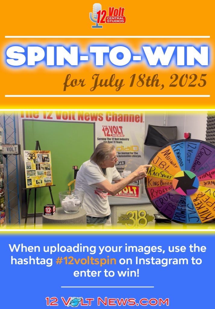 12VOLT CENTRAL STUDIOS (07.19.25) The 12volt Spin-to-Win Wheel was created to bring an element of fun to the 12volt industry. The weekly 12volt Spin-To-Win Wheel is now spinning in Year 6.