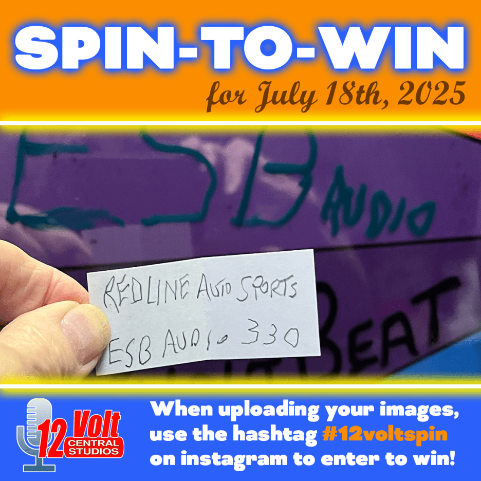The 12volt Spin-To-Win Wheel rolled for the 330th time on Friday morning on July 18th. The Wheel landed on the ESB Audio space and the Redline Auto Sports slip was drawn from the jar. An Instagram post of the winning spin slip was posted. A video of the Wheel spin was also posted.