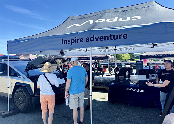 REDMOND, WA (07.2125) – The Modus Tesla Cybertruck drew attendees at the Electrify Expo in Redmond WA like a magnet. Jason Digos welcomed attendees for a demo of the worlds loudest audio system installed in a Tesla Cybertruck. Area rep Dan McMillan, InPhase Marketing, was also on site.