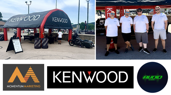 STURGIS, SD (08.07.25) – Once again, Kenwood has a very large footprint at the Sturgis Rally with terrific support from The Audio Edge and their team driving sales and installations in the Kenwood setup. Installations took place under large canopies adjacent to Kenwood’s footprint. Momentum Marketing team members Jimmy Bradfield, Gary Biggs and Ben Pugh are also on site supporting brands that Momentum Marketing represents in the TOLA territory.