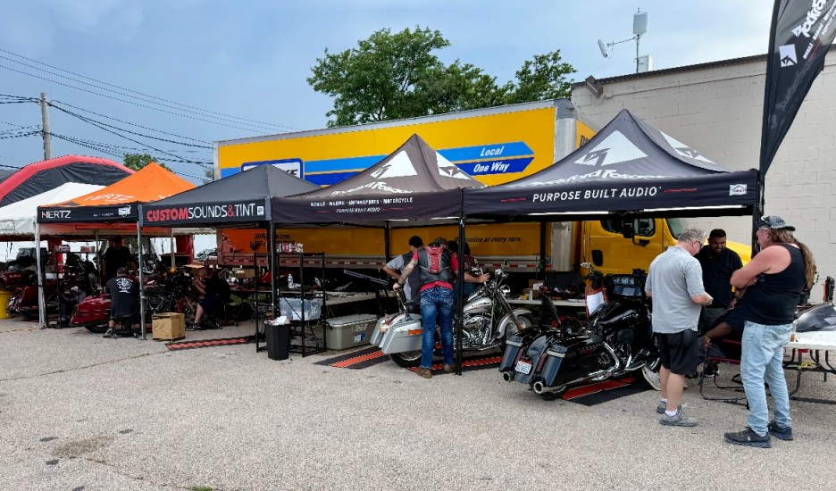 STURGIS, SD (8.08.25) – Custom Sounds is on site, with a large footprint, and is having a great Motorcycle Rally in Sturgis for the 85th Anniversary. Custom Sounds is fully stocked on all motorcycle audio kits from Rockford Fosgate, Kenwood and Hertz. The Custom Sounds Team is certainly jammin’ in downtown Sturgis with bike demos on site for each brand.