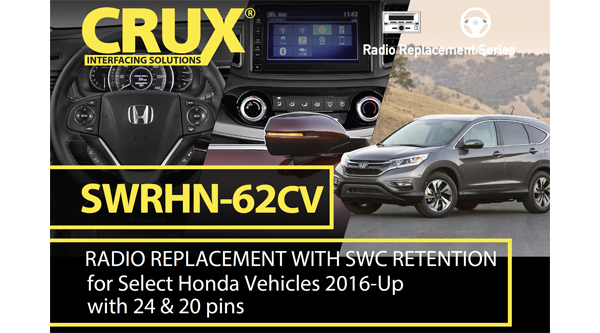 RESEDA, CA (08.13.25) – The CRUX SWRHN-62HV is a premium radio replacement interface designed for select 2016-Up Honda HR-V vehicles with dual 24-pin factory connectors. It enables seamless installation of an aftermarket radio while retaining essential factory features—including steering wheel controls, the multi-angle rearview camera, factory auxiliary input, and USB functionality.