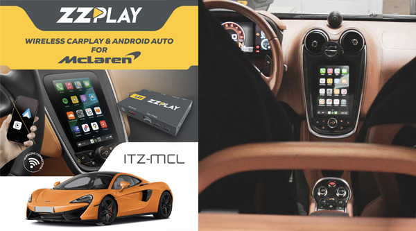 BOCA RATON, FL (08.18.25) – ZZ2 is proud to introduce the ITZ-MCL ZZPLAY Kit, delivering Wireless CarPlay & Android Auto integration to McLaren supercars (2014–2021). This premium upgrade lets your clients enjoy apps like Spotify, Waze, Google Maps, WhatsApp, and iMessage—all controlled seamlessly through the factory interface.