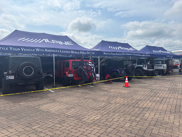 Alpine also has a large installation bay, powered by Tampa-based Alpine Authorized Retailer Soundwaves, so customers can drive home with their Alpine purchases installed. The installation space is located directly next to the Alpine booth space. Across the board Alpine has seen strong action in the booth and installation bays. Alpine partners DOW Technologies and Soundwaves Tampa, along with support from Tech Marketing, have been connecting with Jeepers.