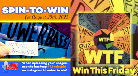Past winners of the 12volt Spin-To-Win include…Stereo & Video Center-Tyler TX, The Outlaw Garage-Franklin TN, Exotic Sounds-West Palm Beach FL, Endless Possibilities-Aurora IL., Go Auto Sound in Union City NJ, Al&Ed’s South Bay CA, No Limitz Car Audio in Upland CA, Neil’s Specialty-Eureka CA, Sturgess Customs-Lexington SC, Audio By Art-San Antonio TX, SMS Car Audio in Marreo LA and Sweet Wheelz in Mississauga Ontario Canada, Cartronics in Biscayne FL, The CarAudio Shop in St Louis MO, Exotic Sounds in West Palm Beach FL, High North Customs in Grand Prairie Alberta Canada and AMS Audio in Bakersfield CA, Team QRT in Abbeyville LA and California Sound in Fontana CA and Jackie Cooper Electronics, Oklahoma City OK, MARS Audio-Orlando FL, All American Audio in Nutley NJ, Proline Car Stereo in Brooklyn NY, Custom Shop Miami, Tunes and Tint in Lakeland FL, Mobile Concepts Inc in Mokena IL, Seismic Auto Sound in Concord CA, Brooklyn Car Audio in Brooklyn NY, Audio Solutions in Florence MS, Enhanced Customs in Largo FL, Rayco Auto Clinic, Audio Design in San Jose CA, Go Bass Mode in Florida, Avenue Sound in Freeport NY, Audio Plus in Riverview FL, Stereo Zone in Whittier CA, In-Phase Car Audio in Omaha NE, AutoLife Group, N&H Electronics, SK Customs, Land & Sea, The Audio One, NC Custom Shop,Tint World Orlando, Ricky Smith’s Audio, VIP Custom Woks, Mobile Audio Concepts, Audio Lad, Sound Sensations, Dave’s Stereo, Stereo Design, Badlands Customs, Custom Audio-Erie PA, Voltz Autosports-Bridgeport CT, Infinity Sound and Security-Kissimmee, Autosport Plus-Canton OH, Stereo City Pros in Carmichael CA, Devine Concepts in Naples FL, The Sound Shop in Indian Trail NC, Extreme Performance Audio in Fresno CA, Audio Depot in Arlington TX, Audio Security in Houston TX, Earmark Car Audio and Marine in Lewisville TX, Audio Jam in Bear DE, Stereo City Ontario, Ontario CA, Audio By Art, San Antonio TX, Code Zero Customs in Tulsa OK, Ken’s Car Tunes in Mobile AL, Soundz Plus in Naperville IL, Markland Designs in Lithonia GA, Electronics Plus in Salinas CA, Xtreme Autosports in Santa Clarita CA, Superior Audio Sounds in San Angelo TX, Model Electronics in Ramsey NJ, Texas Dreamz Customs in Spring TX, Wired Electronics in Linden NJ and Intense Car Audio in OKC, OK, Underground Auto in Sarasota FL, Car Toys Tulsa in Tulsa OK, Real Audio in Erie PA, Go Autosound in Union NJ, DFM Stereo in Ukiah CA, Impact Tint and Audio in Tyler TX, Mobile Sound Systems in Arlington TX, Redline Audio and Performance In Spindale NC, Car Audio Land in San Diego CA, Audio X Custom Car Audio in Florence AL, River Oaks Car Stereo in Houston TX, American Radio Orlando in Sanford FL, Illustrious Customs in Woodbridge VA, Remote Start Pros in Lawrence MA, HiPro Audio in Victoria TX, AudioPlanetNY in Huntington Station NY, Endless Possibilities in Aurora IL, Audio Finesse in Santa Monica, Drive Customs in San Luis Obispo CA, Custom Works, Noblesville IN, AtoZ Detail in West Haven CT, Cars 843 in Charleston SC, CarTunes Atlanta in Atlanta GA, Mobile Concepts in Garwood NJ, Duke’s Car Stereo in Flint MI, Infinity Auto Sound, King Car Audio in Norwalk CT, PopTronics in Baltimore MD, Sanford Sound in Sanford ME, Angelvip2474 in Draper UT, Dynamic Car Audio in Baltimore MD, Hi-Pro Audio in Victoria TX, Car Stereo Max in Houston, Pro Audio Center in Richland MS, Rhodes Off-Roads in Farmington MO, Model Electronics in Ramsey NJ, Class A Sounds in Athens OH. Just Audio Video in North Providence RI, CT_Custom in Philadelphia, Audio Solutions in Florence MS and The Audio Shop RC in Rapid City SD, DG Motorsportz in High Point NC, ST Mobile in Texarkana TX, AR Custom OC in Orange CA, Temecula Mobile Sound in Temecula CA, Unique Auto Sound in Lindenhurst NY, D’s Garage in Corona CA and DS2 Mobile Solutionz in Tomball TX, C G Car Audio in Kissimmee FL, California Audio in West Valley City UT and The Action Audio Store in Wethersfield CT, Eclipse Car Audio in Vancouver WA, Electronics Depot Car Audio in Altamonte Springs FL. Car Audio Garage in Pearland TX, Pinnacle Autosound in Lake City FL, J H Audio in Bowling Green VA, The Car Audio Shop StL in High Ridge MO, Anthonys Car Stereo in North Highlands CA, Flynn Audio in Middleton WI, Living Loud Car Audio in Pelham AL, Trail Star Audio in Minnesota, On The Spot Audio in Pennsauken NJ, Animated Car Audio in Essex MD, West Coast Car Audio in Citrus Heights CA, Modified Auto Sound in East Alton IL, Star Car Audio in Hermiston OR, VapeNAudio in Clovis CA, SoundWorks in Millersville MD Eclipse Car Audio in Vancouver WA, J A Custom Audio in Houston TX Jose Electronics in North Hills CA, Sound Proof Car Stereo in Douglasville GA, Auto Additions in Springfield IL, Elite Car Audio in Hollywood CA, Masters Car Stereo in Greenville SC, Audio Plus in Eden NC, Seismic AutoSound in Novato CA, Car Audio Addicts in Pittsburgh PA and AudioKing Tinting in Yakima WA, Arias Tint and Alarms in Duncanville TX, Odeh Car Audio in Gadsden AL, 12volt Specialist in Newark DE, Cutting Edge Audio in San Diego CA, Southern Auto Fab in Lafayette LA, California Sound in Fontana CA, Big Boyz Toyz in Florence SC, 740 Audio in Athens OH and 12volt Outfitters in Hollywood FL., High Quality Auto Sound, Lawrence MA, Custom Car Stereo SC in Spartanburg SC, Zier Box in Dallas TX, Maximum in Manville NJ, Audio Car Stereo in Miami FL, Mach 1 Audio in Washington MO, Doren Car Stereo in Queens Village NY, Side-x-Side Audio in South Charleston WV, Sound Concept in Nanuet NY, Pda Road Gear in Littleton CO and A-Plus Audio and Tinting Newington CT, Audio Electronics in Indianapolis IN, Tint and Sound in Frederick MD, Tint World Wilmington DE, VIP Autoworks in Mentor OH, All Out Audio in Killeen TX, Yong’s Audio in Indianapolis IN, Custom Audio Concepts in Lima OH, Clear Vibrations in Quakertown PA, The Outlaw Garage in Columbia TN, Xpert Car Audio in Layton UT, No Doubt Window Tint in Ardmore OK, San Diego Car Stereo in San Diego CA, 