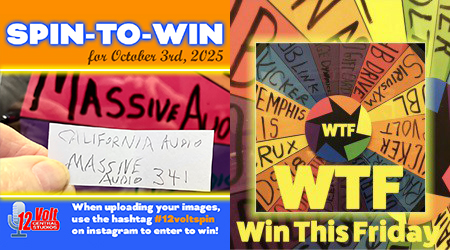 The 12volt Spin-To-Win Wheel rolled for the 341st time on Friday morning on October 3rd. The Wheel landed on the Massive Audio space and the California Audio slip was drawn from the jar. An Instagram post of the winning spin slip was posted. A video of the Wheel spin was also posted.