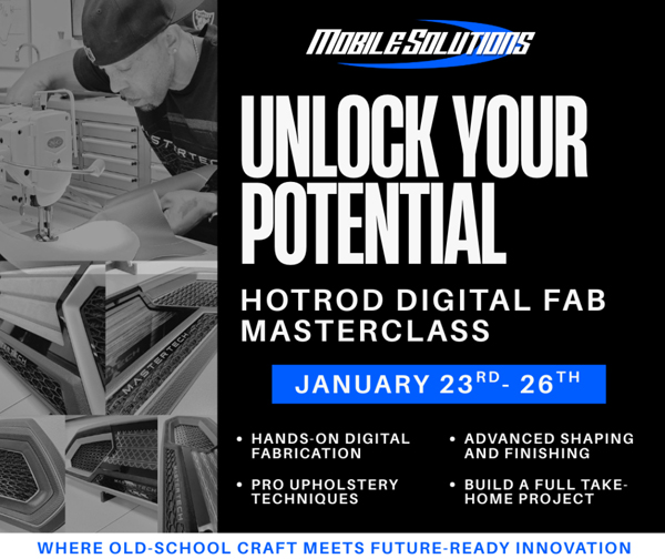 “Our Digital Fab MasterClass is where old-school craftsmanship meets future-ready innovation,” said Bryan Schmitt, founder, president, and CEO of Mobile Solutions. “This immersive four-day workshop is engineered for fabricators, builders, and designers who want to elevate their interior and fabrication skills to an elite, professional level.”