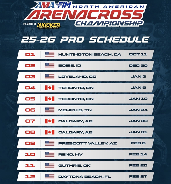 The AMA ArenaCross sponsored by KICKER continues with Round 3 in Loveland, CO January 3rd 2026.