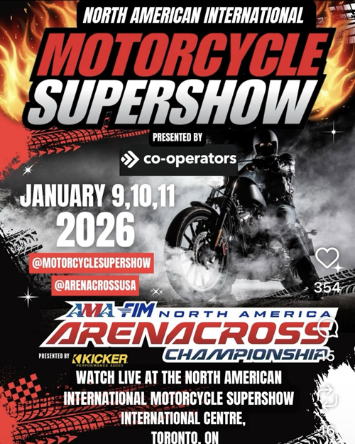 TORONTO, ON (1.13.26) – The International Centre in Toronto was packed the weekend of January 9-11. The North American international Motorcycle SuperShow and the AMA North America ArenaCross event packed the International Centre filled with exhibitors, demos and products enthusiast could check out leading up to the bike season. The AMA ArenaCross was an added benefit as enthusiast could see riders navigating tight turns and flying high over mounds on the dirt track.