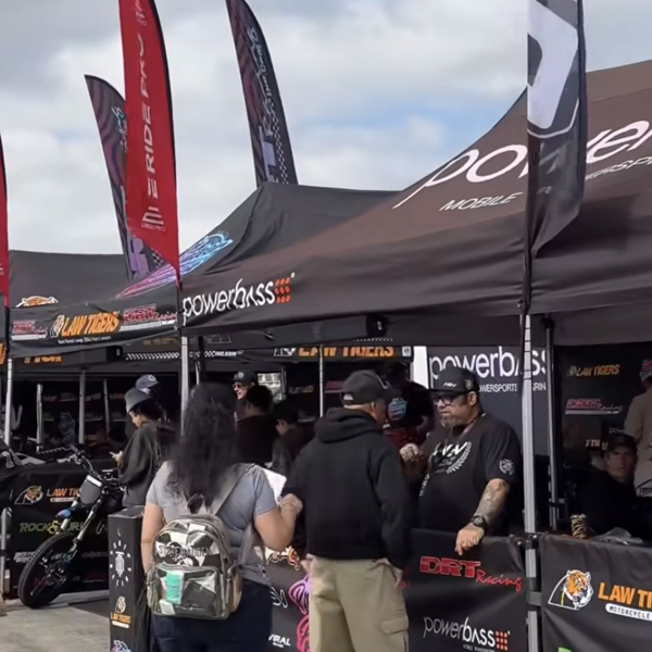 ANAHEIM, CA (1.27.26) – PowerBass was on site at the AMA SuperCross event at Angel Stadium in Anaheim on Saturday January 24th in the Privateer Paddock Booth. Erik Harbour, along with Juan Quintana and PowerBass models Jordan, Amanda and Serra were set up in the large booth that attracted a lot of traffic at the family friendly event. PowerBass sponsored the Privateer Paddock area and had a display set up underneath the large tent.