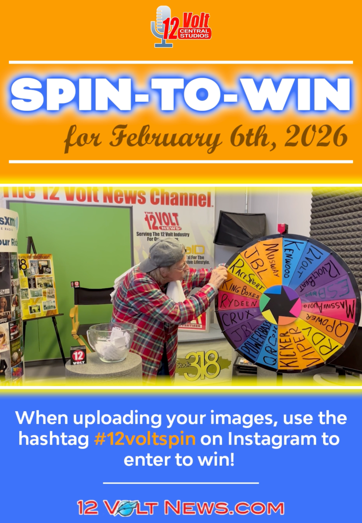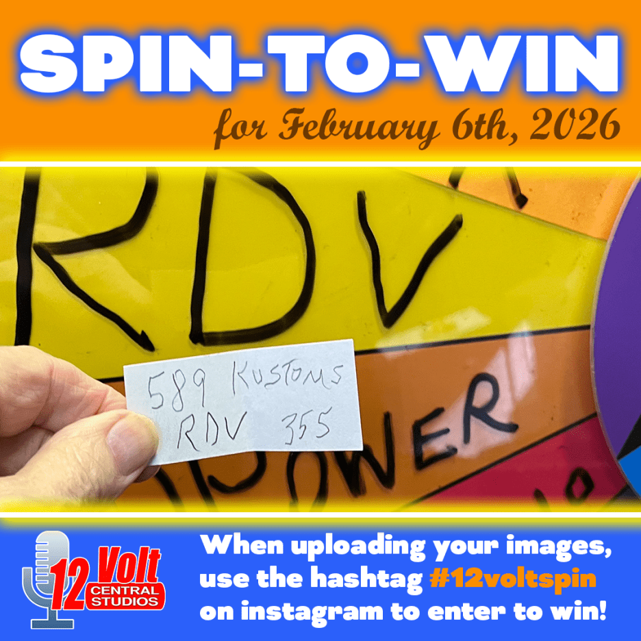 12VOLT CENTRAL STUDIOS (02.07.26) The 12volt Spin-to-Win Wheel was created to bring an element of fun to the 12volt industry. The weekly 12volt Spin-To-Win Wheel is now spinning in Year 7.