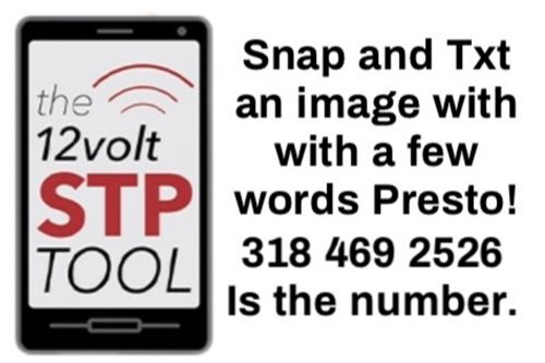 A 12volt industry member can be out a show trade show, consumer show or a rep on the road calling calling on dealers. With the 12voltSTP Tool all it takes is for that industry member to snap and txt and Image, with a few words, to 318-469-2526 and we can put the 12volt Central Studios Marketing Ball in play showcasing your activities.