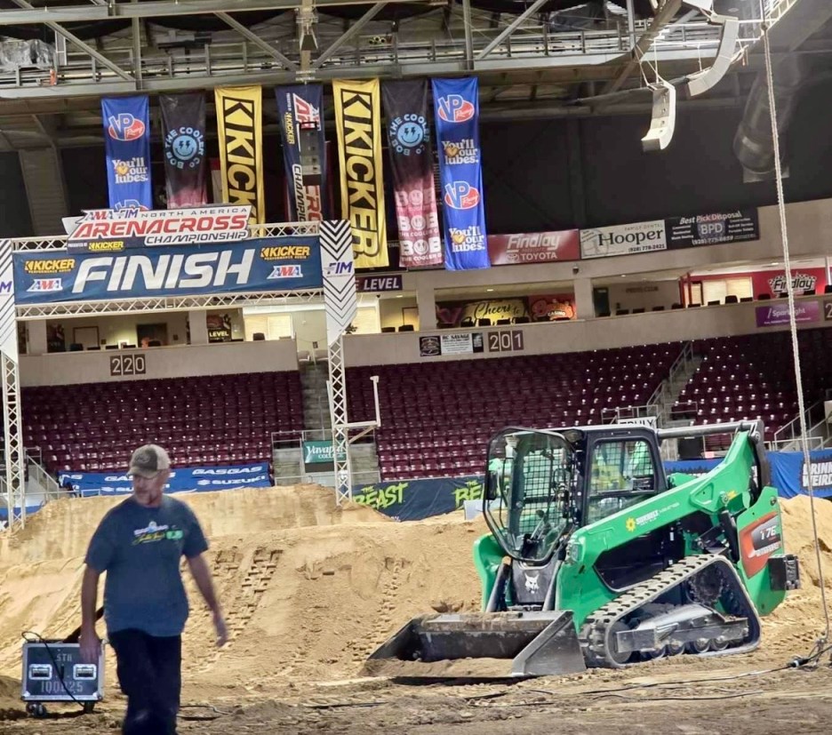 for Round 9 of the AMA KICKER ArenaCross ’25-’26 Pro Schedule. The arena area was reconfigured from a hockey rink to a dirt track with mound after mound riders had to navigate as they made their way around the track.