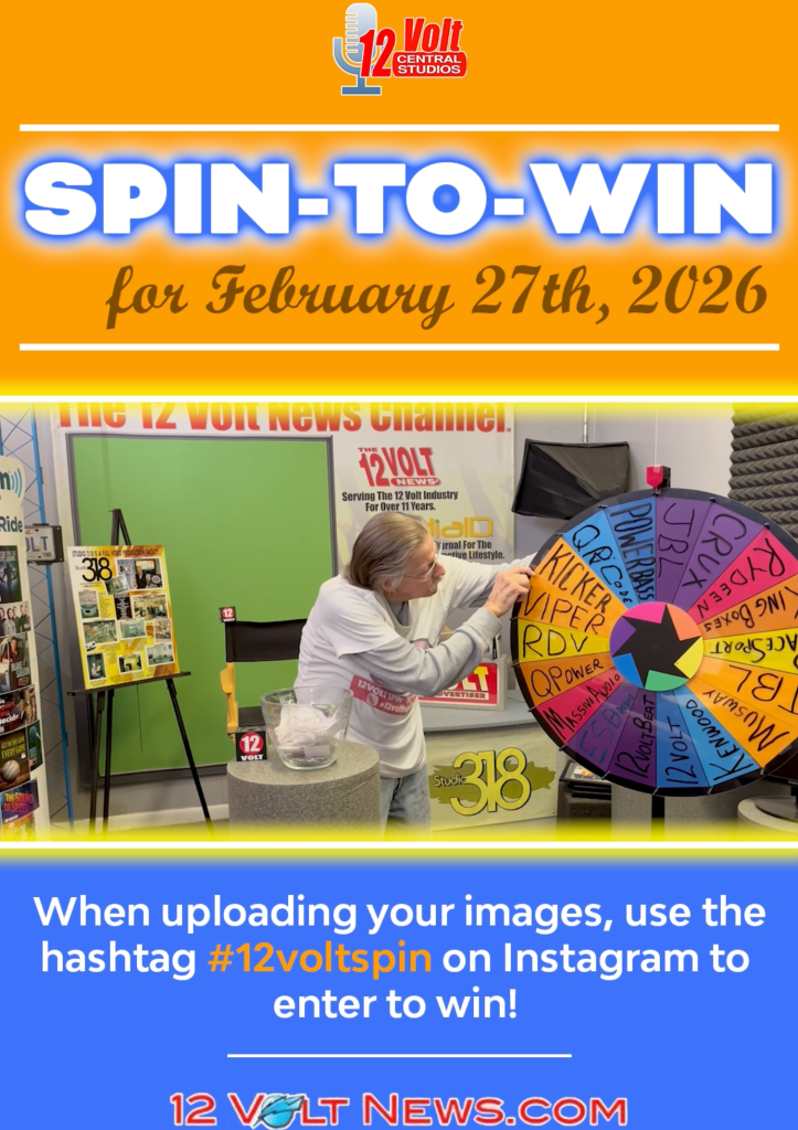 12VOLT CENTRAL STUDIOS (02.21.26) The 12volt Spin-to-Win Wheel was created to bring an element of fun to the 12volt industry. The weekly 12volt Spin-To-Win Wheel is now spinning in Year 7.