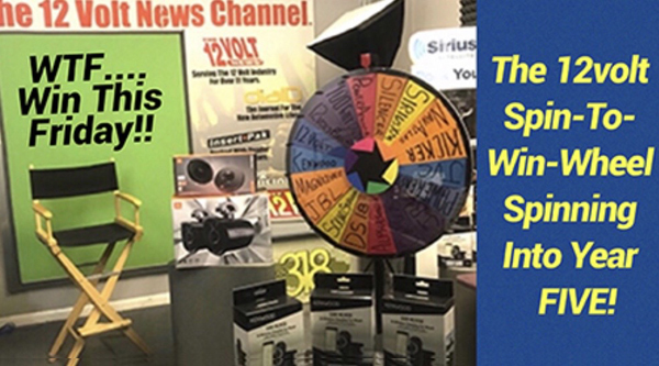 The 12volt Spin-To-Win Wheel was created to bring an element of fun to the 12volt industry. Spinning out a winner each Friday, a lucky 12volt retailer could win a cool prize and top brands received visibility across the marketplace. James Halter, Stereo and Video Center in Tyler TX, was a winner of the first 12volt Spin-To-Win Wheel and he received a CRUX prize package. The 360th spin was orchestrated to be won by Stereo and Video Center and a RDV or cash prize will be headed that way.