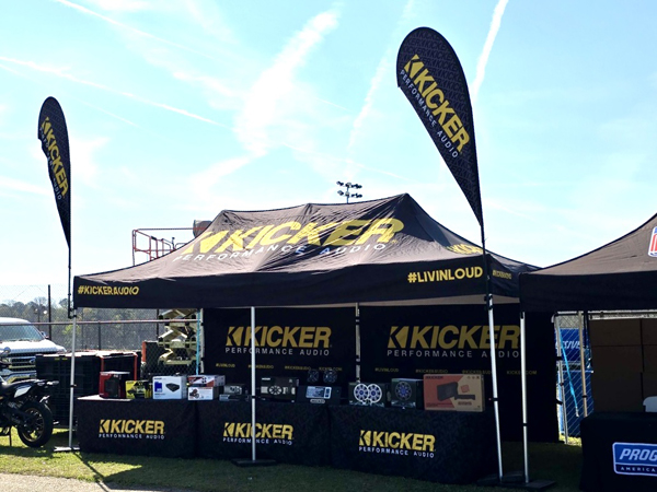 Lorin Morrell, Maddog Media, was trackside with a large KICKER display area near the front entrance. Morrell stated “Action in the booth was very strong throughout the day. In the local area there are many bikers and the season is ramping up as KICKER is providing more products for bikes than ever. Also in the rural area there are so many truck on the road and KICKER has a wide variety of products for trucks…Marine too with lakes in the area. The stands were very close to being sold out plus the demographic of attendees was a perfect opportunity for experiencing KICKER’s wide variety of products.”