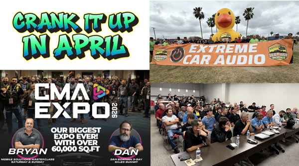 The uptick of industry events is continuing to begin the month of April. The Creative Audio AMP’D Up in the Ozarks kicks off on Saturday the 4th followed Davis Distribution events in Pittsburgh and later in Valley Forge. The Petra Beats & Bites event on the 8th in Edmond OK is set to again draw a big turnout of area dealers. The CMA Expo begins on the 10th in Toronto and will draw dealers from across Canada. The N and H Electronics show on the 11th in Hattiesburg MS, the AM Merchandising Show in Oakland CA, followed by the big Jeep Beach Bash Consumer event in Daytona Beach, will keep all Cranked Up In April.