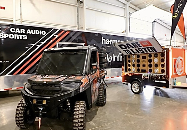 JBL was on site as Chris Pace rolled the Arrowhead Sales JBL trailer down from Kansas City to provide live demos from the trailer. JBL’s Fred Isensee made the trip to bring in a large JBL trailer. On board was a 2-door Polaris Ranger and Polaris Expedition. Both were decked out and loaded for demos.