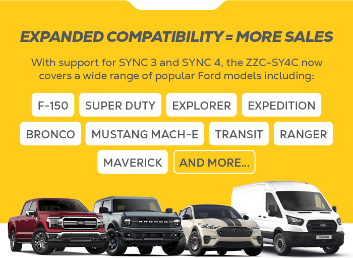 We’re excited to announce a major update to one of our fastest-growing products. The ZZC-SY4C now supports both Ford SYNC 3 and SYNC 4 systems. This means more vehicles, more installs and more sales potential for your shop.