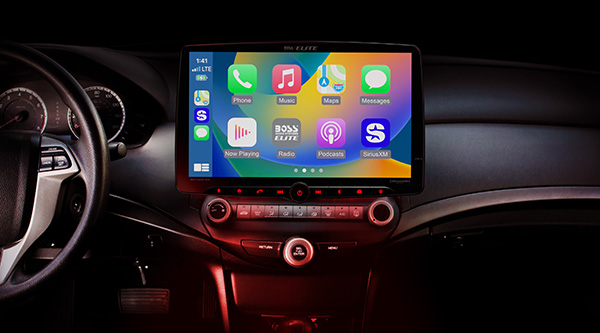 The new BOSS Elite Headunits feature an updated touchscreen design, intuitive tactile buttons, and dynamic ambient lighting, all crafted to enhance the driving experience. Built-in Digital Signal Processor (DSP) capabilities allow users to personalize their audio settings effortlessly, ensuring a customized sound experience. Notably, the oversized screen options, available in 12″ and 14″ sizes, set a new industry benchmark. The Headunits are also available in 9″, 10.1″ and 7″ Double DIN variations. Compatibility with Apple CarPlay® and Android Auto™ ensures seamless connectivity with smartphones and streaming services, while built-in SiriusXM capability allows direct access to satellite radio without needing to connect your phone, although a separate tuner is required for this function.