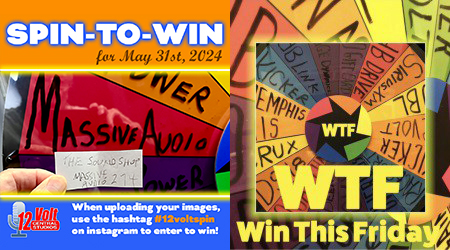 Past winners of the 12volt Spin-To-Win include…Stereo & Video Center-Tyler TX, The Outlaw Garage-Franklin TN, Exotic Sounds-West Palm Beach FL, Endless Possibilities-Aurora IL., Go Auto Sound in Union City NJ, Al&Ed’s South Bay CA, No Limitz Car Audio in Upland CA, Neil’s Specialty-Eureka CA, Sturgess Customs-Lexington SC, Audio By Art-San Antonio TX, SMS Car Audio in Marreo LA and Sweet Wheelz in Mississauga Ontario Canada, Cartronics in Biscayne FL, The CarAudio Shop in St Louis MO, Exotic Sounds in West Palm Beach FL, High North Customs in Grand Prairie Alberta Canada and AMS Audio in Bakersfield CA, Team QRT in Abbeyville LA and California Sound in Fontana CA and Jackie Cooper Electronics, Oklahoma City OK, MARS Audio-Orlando FL, All American Audio in Nutley NJ, Proline Car Stereo in Brooklyn NY, Custom Shop Miami, Tunes and Tint in Lakeland FL, Mobile Concepts Inc in Mokena IL, Seismic Auto Sound in Concord CA, Brooklyn Car Audio in Brooklyn NY, Audio Solutions in Florence MS, Enhanced Customs in Largo FL, Rayco Auto Clinic, Audio Design in San Jose CA, Go Bass Mode in Florida, Avenue Sound in Freeport NY, Audio Plus in Riverview FL, Stereo Zone in Whittier CA, In-Phase Car Audio in Omaha NE, AutoLife Group, N&H Electronics, SK Customs, Land & Sea, The Audio One, NC Custom Shop,Tint World Orlando, Ricky Smith’s Audio, VIP Custom Woks, Mobile Audio Concepts, Audio Lad, Sound Sensations, Dave’s Stereo, Stereo Design, Badlands Customs, Custom Audio-Erie PA, Voltz Autosports-Bridgeport CT, Infinity Sound and Security-Kissimmee, Autosport Plus-Canton OH, Stereo City Pros in Carmichael CA, Devine Concepts in Naples FL, The Sound Shop in Indian Trail NC, Extreme Performance Audio in Fresno CA, Audio Depot in Arlington TX, Audio Security in Houston TX, Earmark Car Audio and Marine in Lewisville TX, Audio Jam in Bear DE, Stereo City Ontario, Ontario CA, Audio By Art, San Antonio TX, Code Zero Customs in Tulsa OK, Ken’s Car Tunes in Mobile AL, Soundz Plus in Naperville IL, Markland Designs in Lithonia GA, Electronics Plus in Salinas CA, Xtreme Autosports in Santa Clarita CA, Superior Audio Sounds in San Angelo TX, Model Electronics in Ramsey NJ, Texas Dreamz Customs in Spring TX, Wired Electronics in Linden NJ and Intense Car Audio in OKC, OK, Underground Auto in Sarasota FL, Car Toys Tulsa in Tulsa OK, Real Audio in Erie PA, Go Autosound in Union NJ, DFM Stereo in Ukiah CA, Impact Tint and Audio in Tyler TX, Mobile Sound Systems in Arlington TX, Redline Audio and Performance In Spindale NC, Car Audio Land in San Diego CA, Audio X Custom Car Audio in Florence AL, River Oaks Car Stereo in Houston TX, American Radio Orlando in Sanford FL, Illustrious Customs in Woodbridge VA, Remote Start Pros in Lawrence MA, HiPro Audio in Victoria TX, AudioPlanetNY in Huntington Station NY, Endless Possibilities in Aurora IL, Audio Finesse in Santa Monica, Drive Customs in San Luis Obispo CA, Custom Works, Noblesville IN, AtoZ Detail in West Haven CT, Cars 843 in Charleston SC, CarTunes Atlanta in Atlanta GA, Mobile Concepts in Garwood NJ, Duke’s Car Stereo in Flint MI, Infinity Auto Sound, King Car Audio in Norwalk CT, PopTronics in Baltimore MD, Sanford Sound in Sanford ME, Angelvip2474 in Draper UT, Dynamic Car Audio in Baltimore MD, Hi-Pro Audio in Victoria TX, Car Stereo Max in Houston, Pro Audio Center in Richland MS, Rhodes Off-Roads in Farmington MO, Model Electronics in Ramsey NJ, Class A Sounds in Athens OH. Just Audio Video in North Providence RI, CT_Custom in Philadelphia, Audio Solutions in Florence MS and The Audio Shop RC in Rapid City SD, DG Motorsportz in High Point NC, ST Mobile in Texarkana TX, AR Custom OC in Orange CA, Temecula Mobile Sound in Temecula CA, Unique Auto Sound in Lindenhurst NY, D’s Garage in Corona CA and DS2 Mobile Solutionz in Tomball TX, C G Car Audio in Kissimmee FL, California Audio in West Valley City UT and The Action Audio Store in Wethersfield CT, Eclipse Car Audio in Vancouver WA, Electronics Depot Car Audio in Altamonte Springs FL. Car Audio Garage in Pearland TX, Pinnacle Autosound in Lake City FL, J H Audio in Bowling Green VA, The Car Audio Shop StL in High Ridge MO, Anthonys Car Stereo in North Highlands CA, Flynn Audio in Middleton WI, Living Loud Car Audio in Pelham AL, Trail Star Audio in Minnesota, On The Spot Audio in Pennsauken NJ, Animated Car Audio in Essex MD, West Coast Car Audio in Citrus Heights CA, Modified Auto Sound in East Alton IL, Star Car Audio in Hermiston OR, VapeNAudio in Clovis CA, SoundWorks in Millersville MD Eclipse Car Audio in Vancouver WA, J A Custom Audio in Houston TX Jose Electronics in North Hills CA, Sound Proof Car Stereo in Douglasville GA, Auto Additions in Springfield IL, Elite Car Audio in Hollywood CA, Masters Car Stereo in Greenville SC, Audio Plus in Eden NC, Seismic AutoSound in Novato CA, Car Audio Addicts in Pittsburgh PA and AudioKing Tinting in Yakima WA, Arias Tint and Alarms in Duncanville TX, Odeh Car Audio in Gadsden AL, 12volt Specialist in Newark DE, Cutting Edge Audio in San Diego CA, Southern Auto Fab in Lafayette LA, California Sound in Fontana CA, Big Boyz Toyz in Florence SC, 740 Audio in Athens OH and 12volt Outfitters in Hollywood FL., High Quality Auto Sound, Lawrence MA, Custom Car Stereo SC in Spartanburg SC, Zier Box in Dallas TX, Maximum in Manville NJ, Audio Car Stereo in Miami FL, Mach 1 Audio in Washington MO, Doren Car Stereo in Queens Village NY, Side-x-Side Audio in South Charleston WV, Sound Concept in Nanuet NY, Pda Road Gear in Littleton CO and A-Plus Audio and Tinting Newington CT, Audio Electronics in Indianapolis IN, Tint and Sound in Frederick MD, Tint World Wilmington DE, VIP Autoworks in Mentor OH, All Out Audio in Killeen TX, Yong’s Audio in Indianapolis IN, Custom Audio Concepts in Lima OH, Clear Vibrations in Quakertown PA, The Outlaw Garage in Columbia TN, Xpert Car Audio in Layton UT, No Doubt Window Tint in Ardmore OK, San Diego Car Stereo in San Diego CA, 