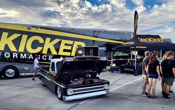 Continuing “ KICKER’s Tracy Focht and Jacob Luckey were on site. Focht worked with area rep Dan Murphy-Murfco and area dealers. Luckey worked under the tent to connect with enthusiasts showcasing the wide selection of KICKER products.”