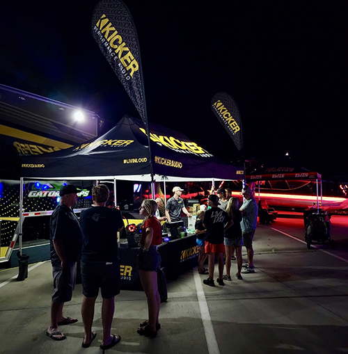 “Local retailer Elite Audio debuted their new KICKER equipped Tri Toon with SOLO X subs along with their deck boat. The two were connected soundwise so Jeff, Shawn and Christine were definitely Livin’Loud in the marina. The lighting on many of the boats in the marina and harbor was out of this world at night time” Morrell added.