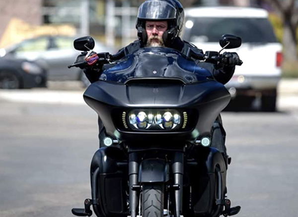 Sam Walker, on his Harley, has been a bike enthusiast for over 2 decades.